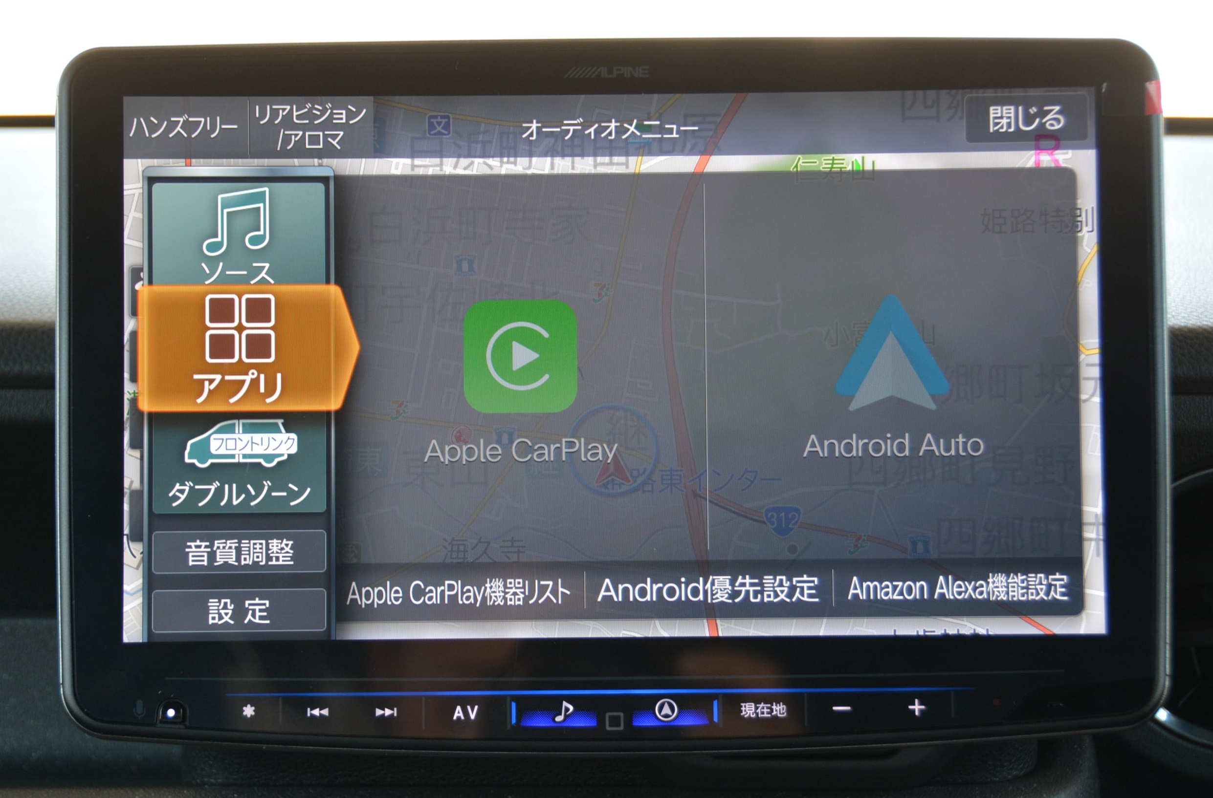 フルセグTV、HDMI/USB接続、Bluetooth接続、Amazon Alexa搭載、Apple CarPlay/Android Autoでスマホアプリに対応^^